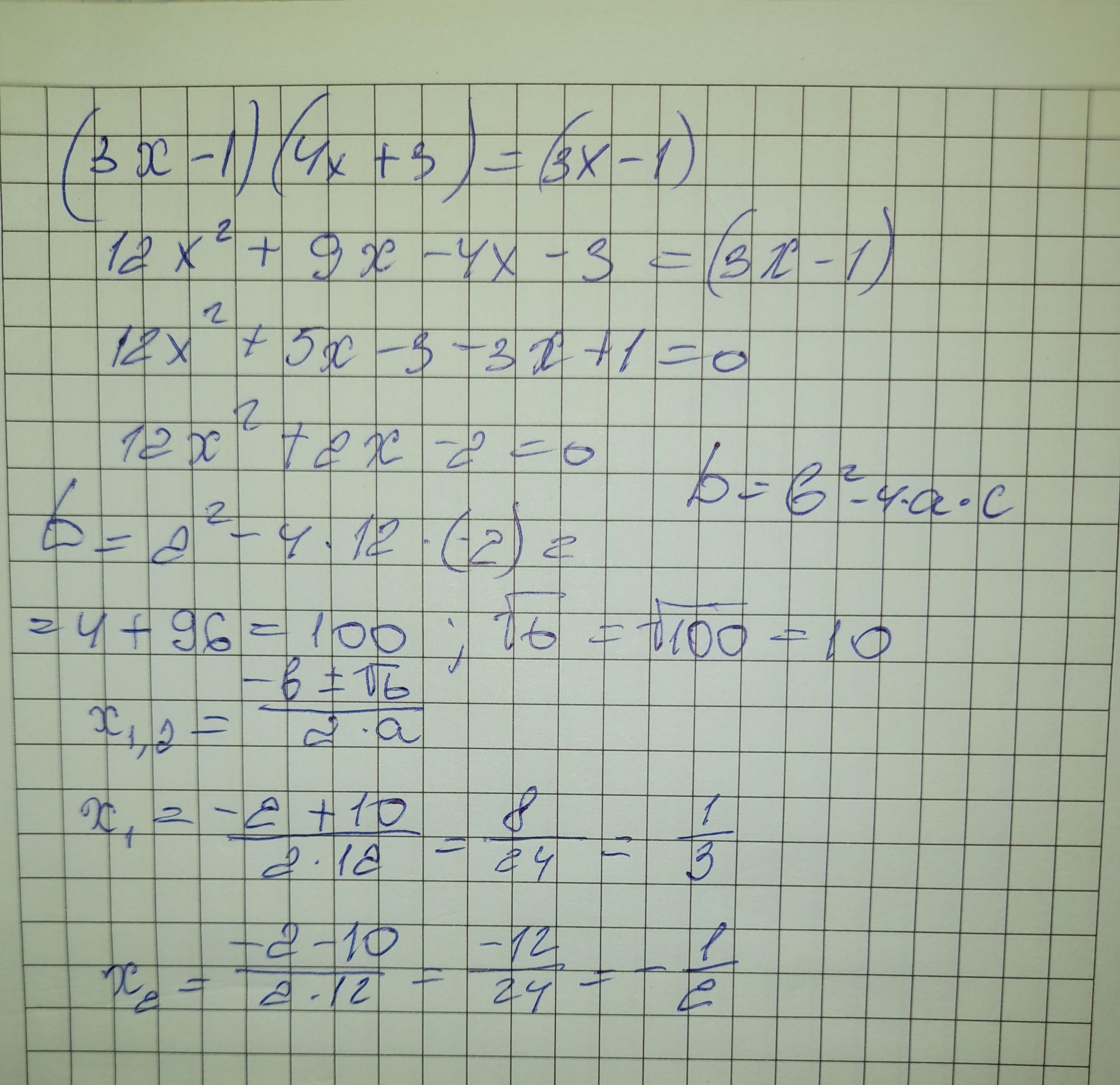 Пошаговое объяснение: √(3x-1)(4x+3)-(3x-1)=0