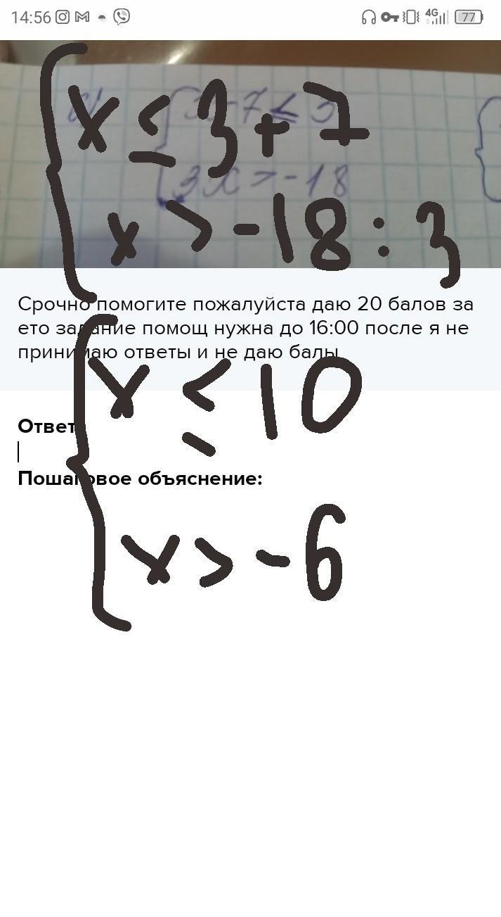 ответ на рисунке. х меньше или равно 10; х больше -6