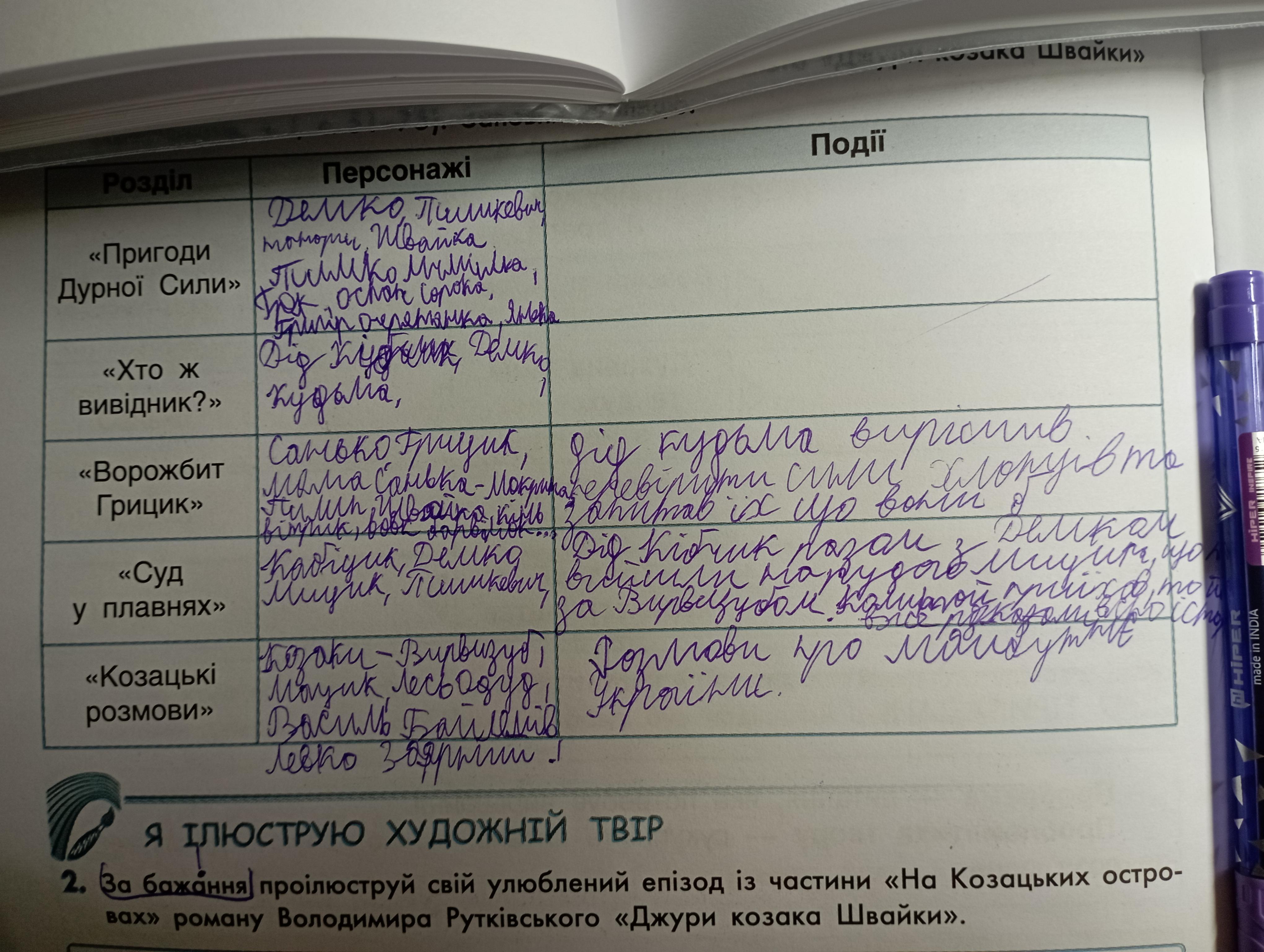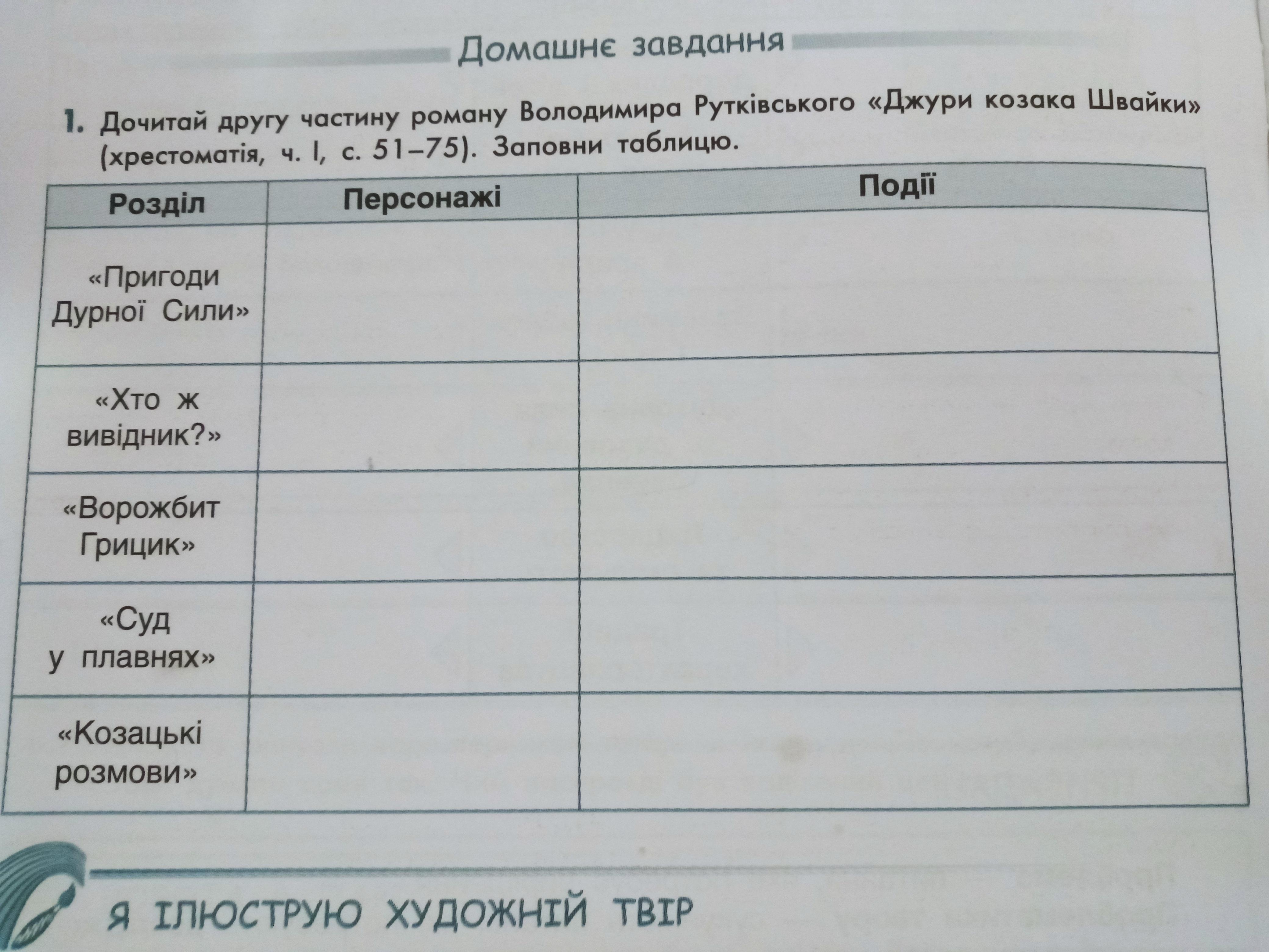 ДАМ 50 БАЛЛОВ! Прочитай другу частину роману Володимира Рутківського "Джури козака Швайки", заповни таблицю