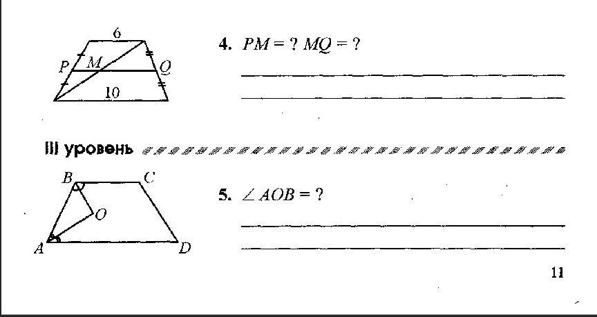 2) PQ = (6+10)/2 = 8; PM+MQ = 8; PM : MQ = 1 : 2 ⇒ PM = 8/3 = 2.66;