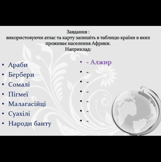 використовуючи атлас та карту запишіть в таблицю країни в яких