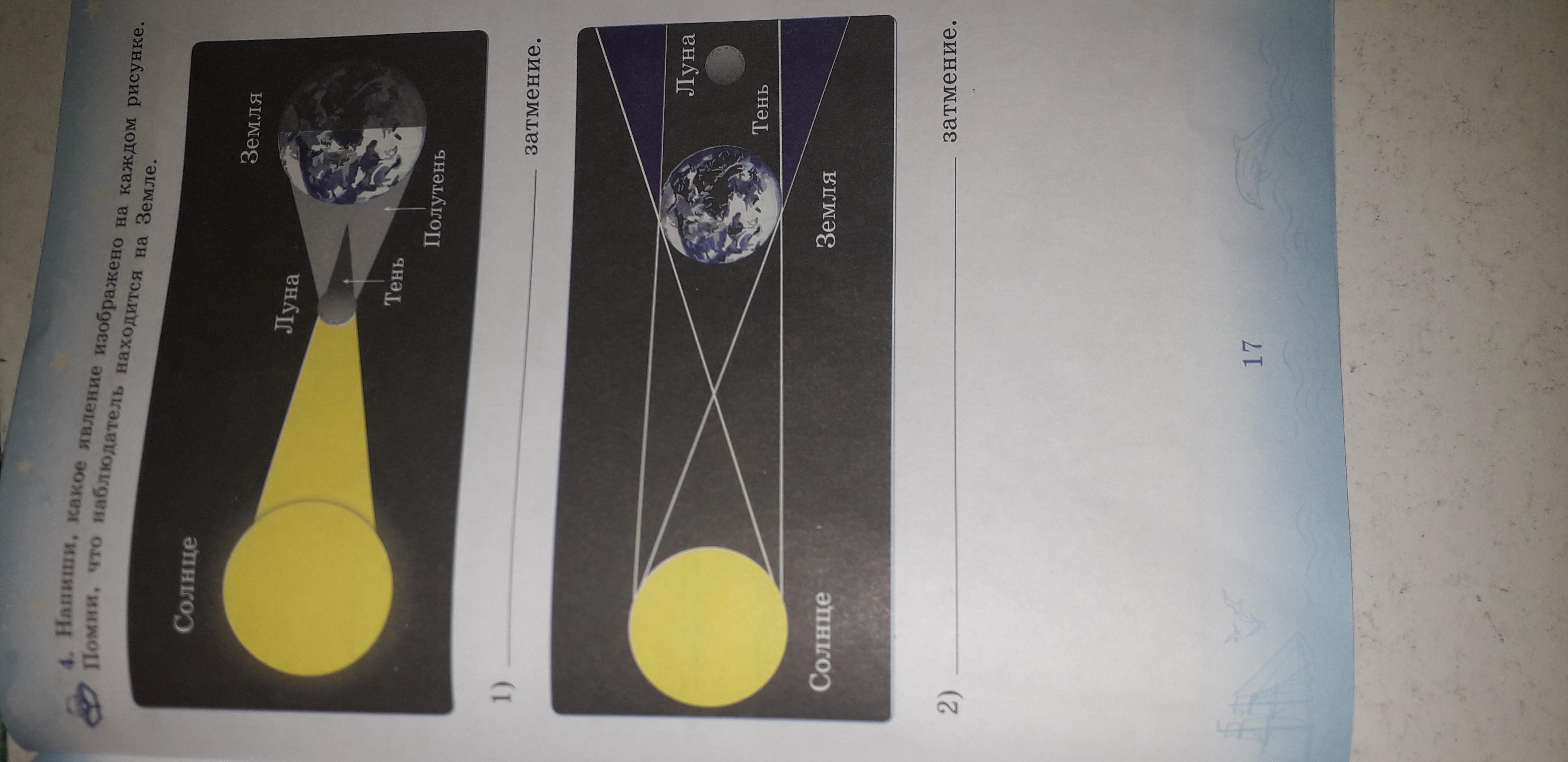 Напиши, какое явление изображено на каждом рисунке. Помни что наблюдатель находится на Земле. Помогитее