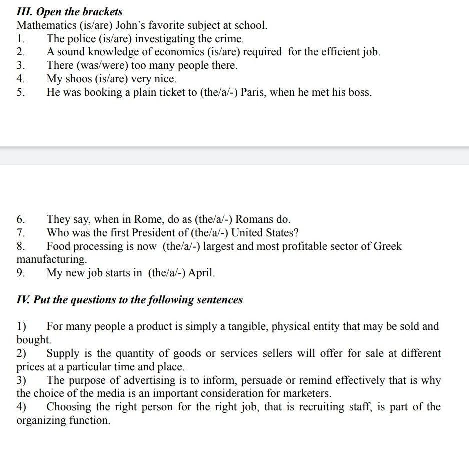 Вправа містила в собі вибір на is / are та на the / а / - .