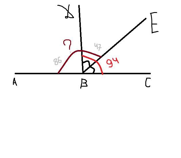 кут АВЕ=кут АВД+кут ДВЕ=86+47=133