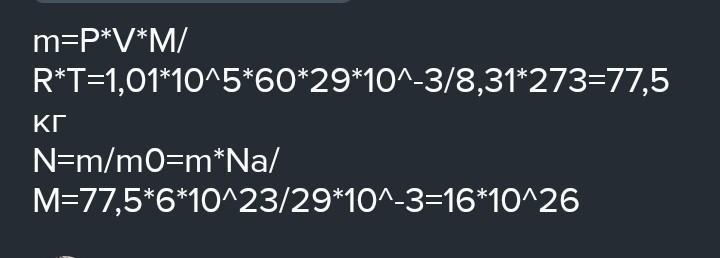 СРОЧНО !!!!! Скільки молекул повітря міститься в кімнаті обʼємом 8×5×4 м при но-мальних умовах? Молярна маса повітря М = 29-10- кг/моль.