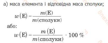 92.Як обчислити масову частку елемента у сполуці, якщо відомі: а) маса елемента і відповідна маса сполуки; б) хімічна формула сполуки?