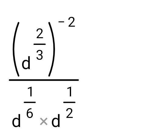 \frac{( {d}^{ \frac{2}{3} }) ^{ - 2}  }{ {d}^{ \frac{1}{6} }  \times  {d}^{ \frac{1}{2} } }