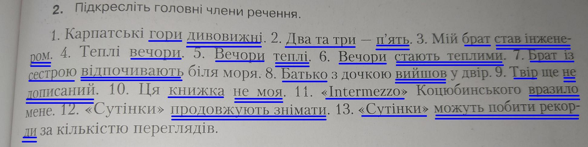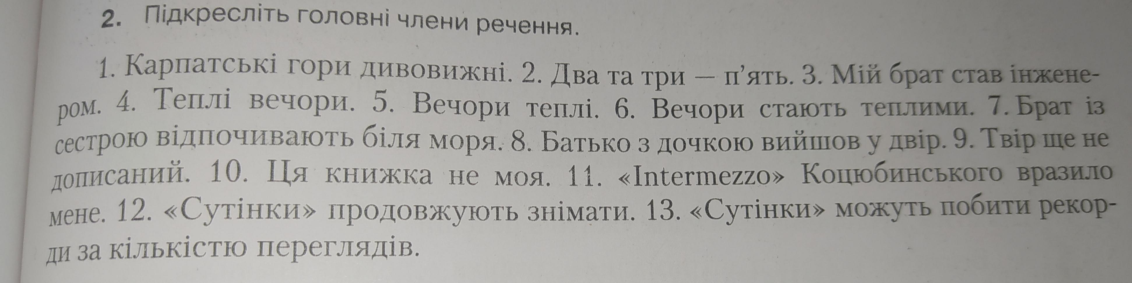 Підкресліть головні члени речення.