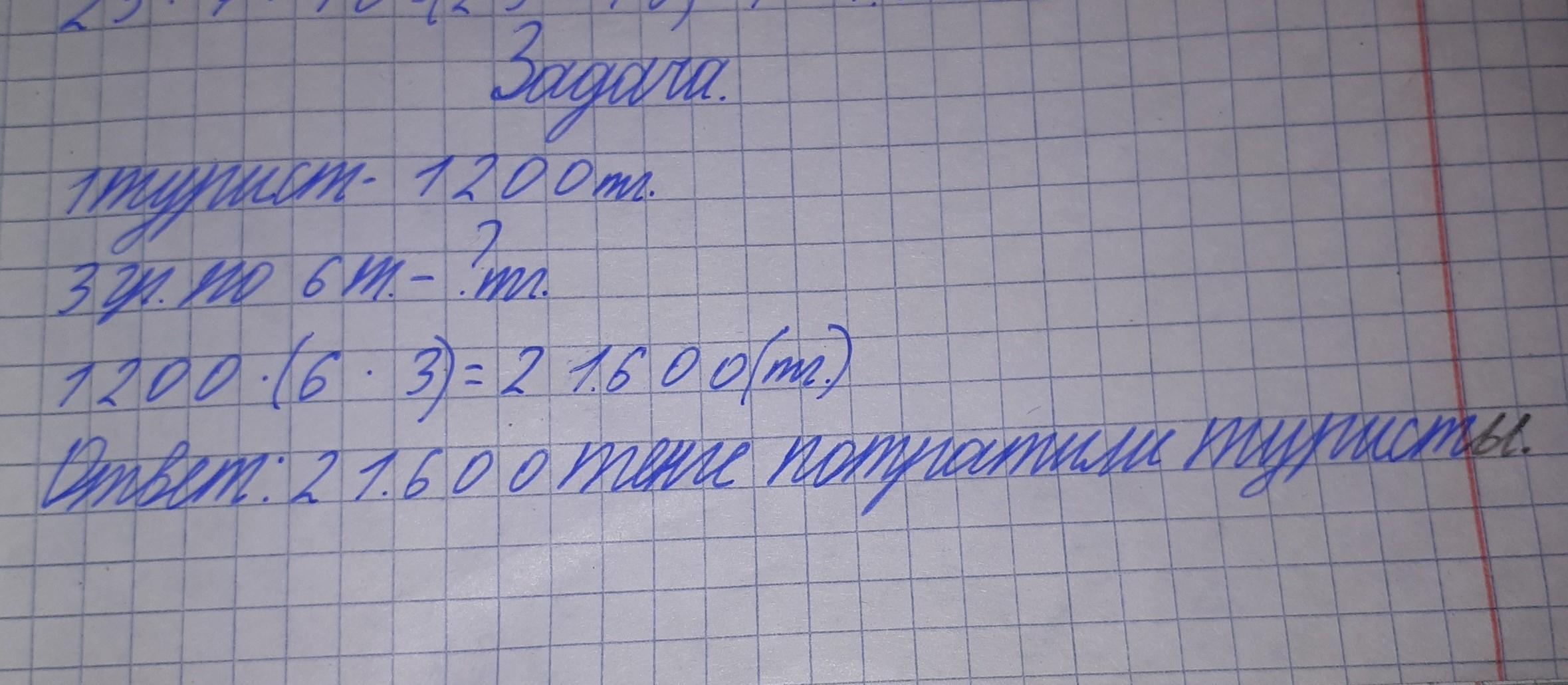 Реши задачи. 5 а) На экскурсию в Испиджаб турист потратил 1 200 TeH- ге Сколько денег потребуется трем группам туристов из 6 человек каждая? (При такой же цене экскурсии на одного человека)