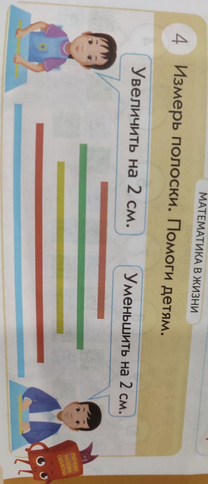 4 Измерь полоски. Помоги детям. Увеличить на 2 см. Уменьшить на 2 см.(я тупая просто)