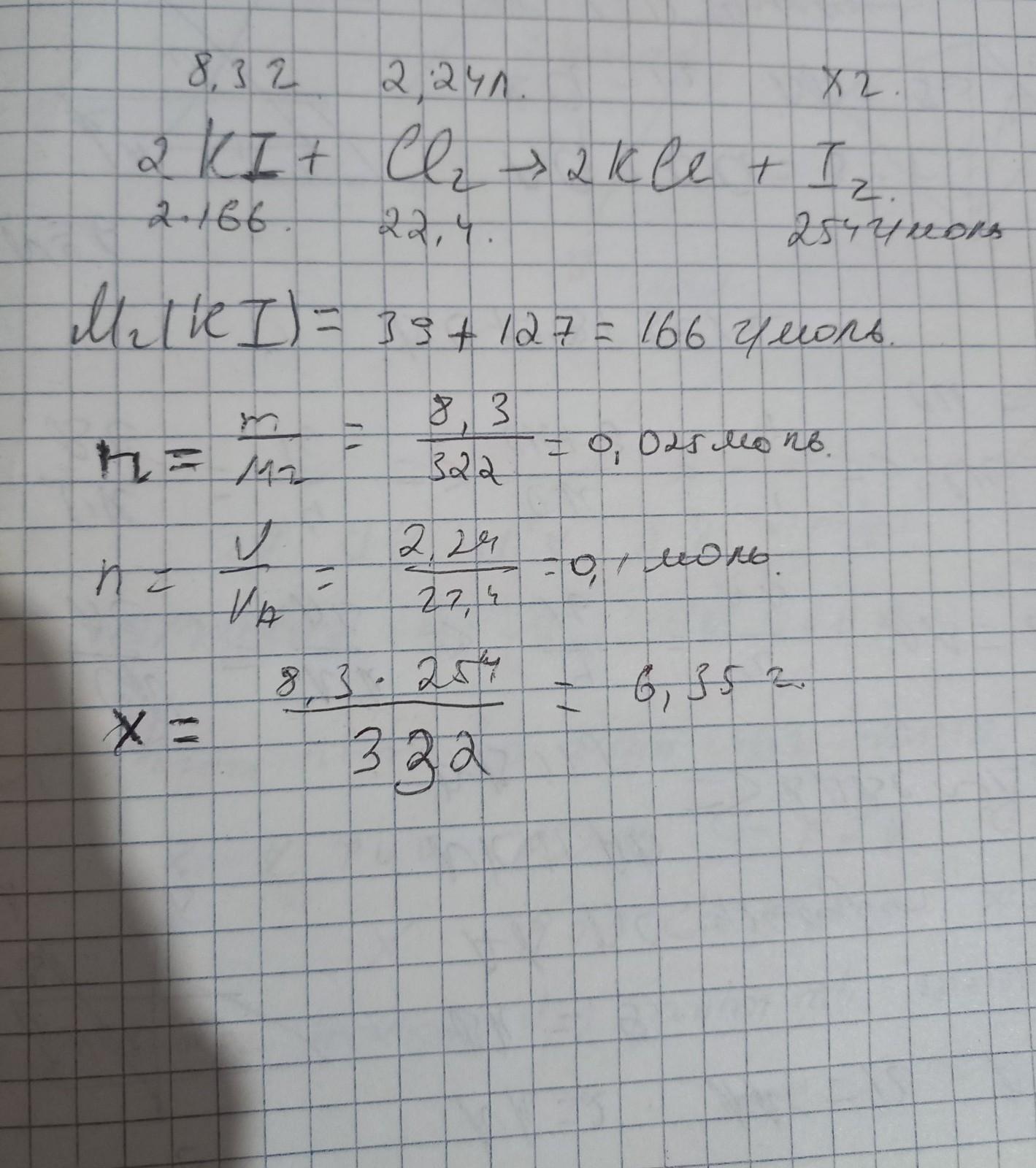 . 8,3 калий йодиді барерітіндіге 2,24 л хлорды жібергенде түзілетін йод салмағын есепте