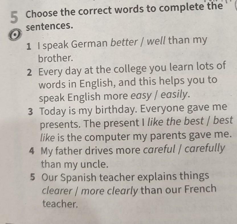 1 better 2 easily 3 the best 4 carefully 5 more clearly