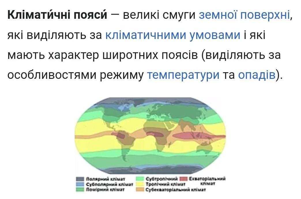 Кліматичнмй пояс — великі смуги земної поверхні, які виділяють за кліматичними умовами і які мають характер широтних поясів