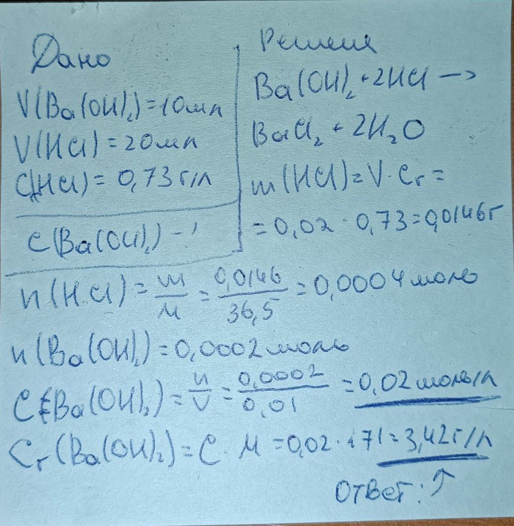 Для нейтрализации 10 мл раствора Ba(OH)2 понадобилось