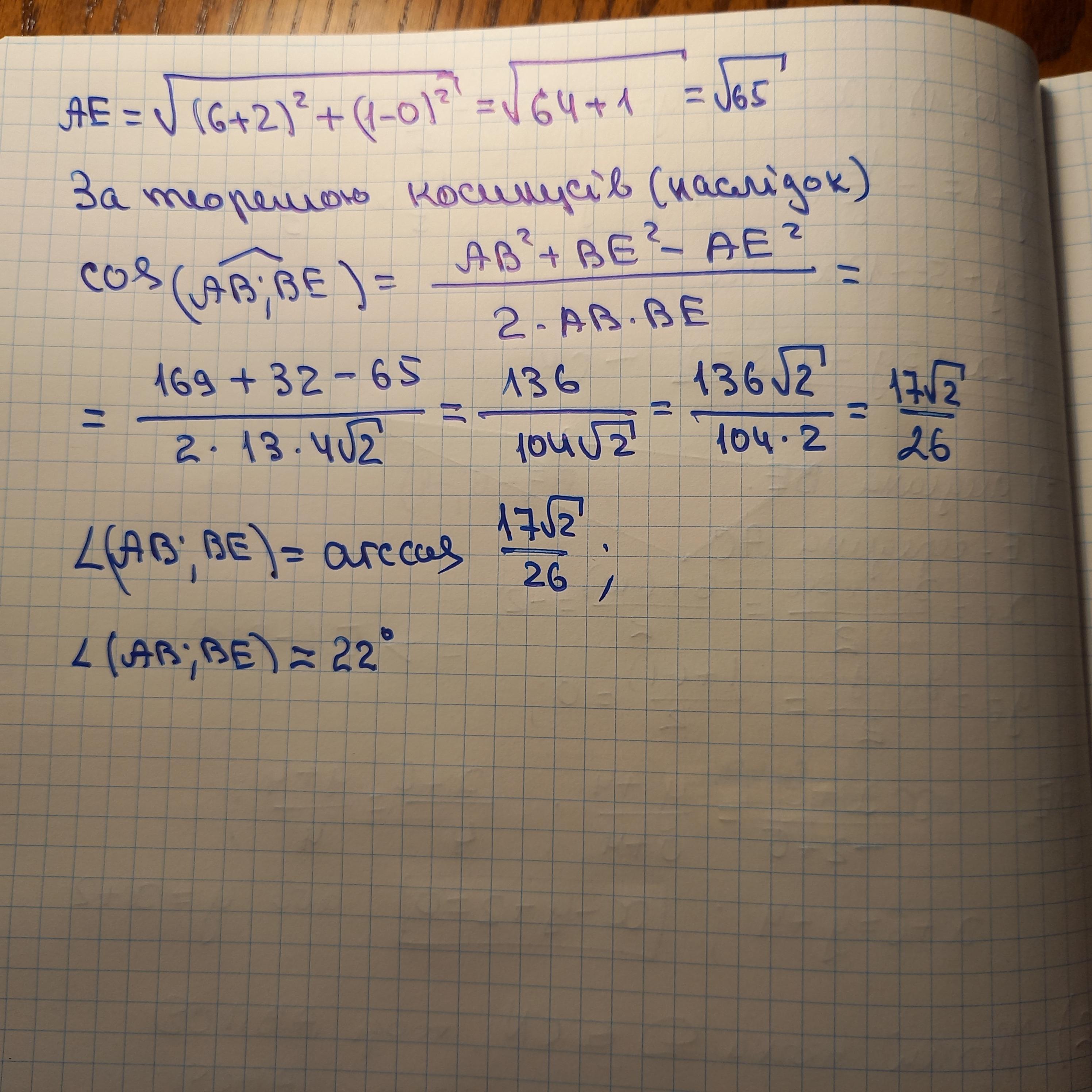 Знайти кут між прямими AB і BE.