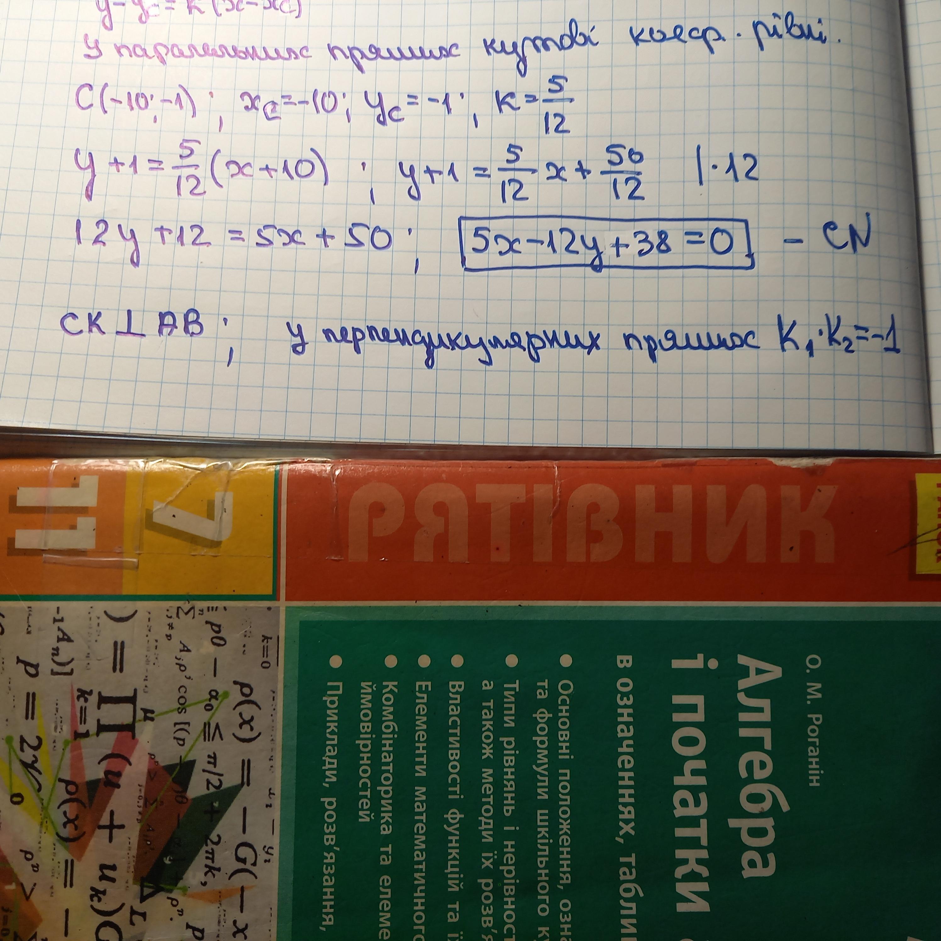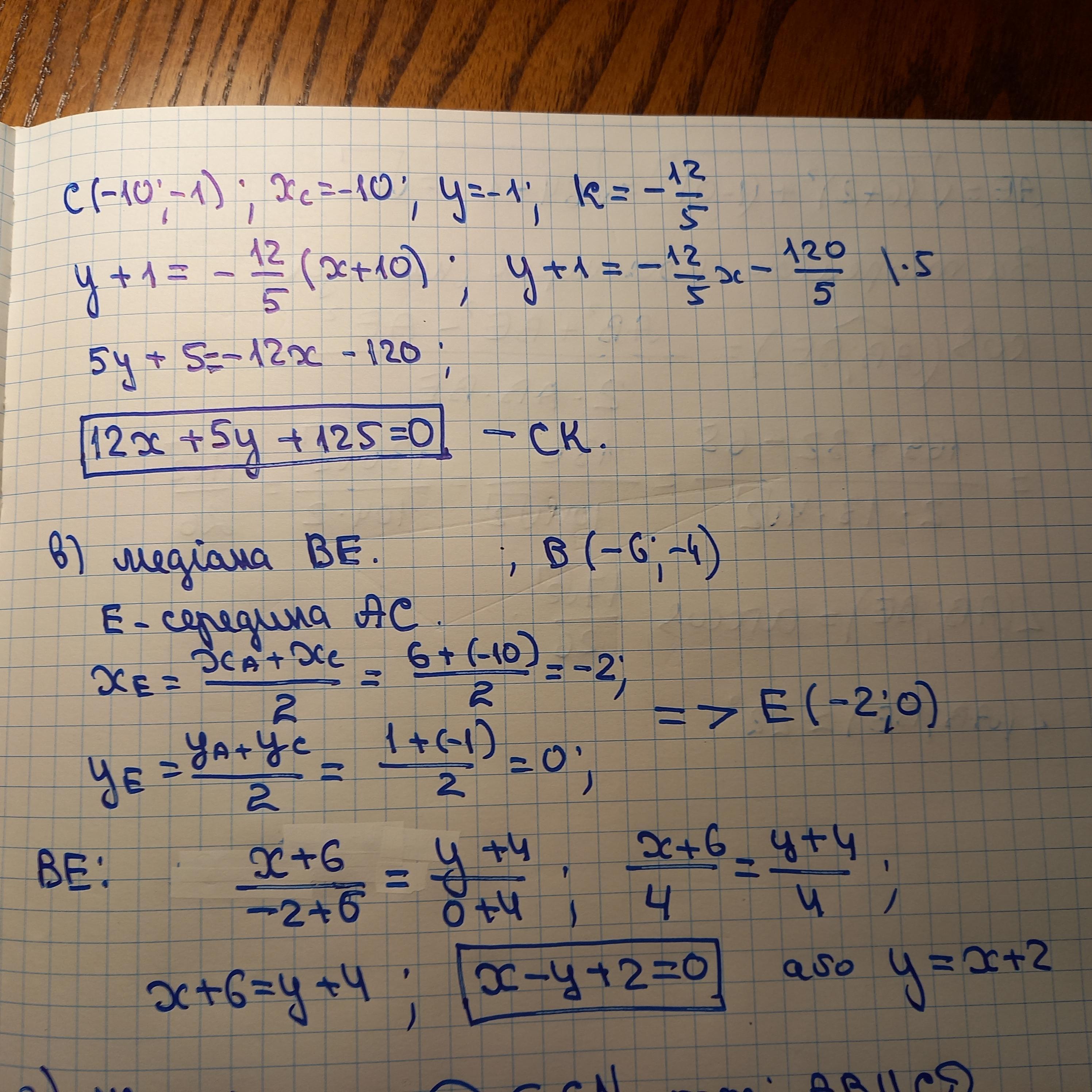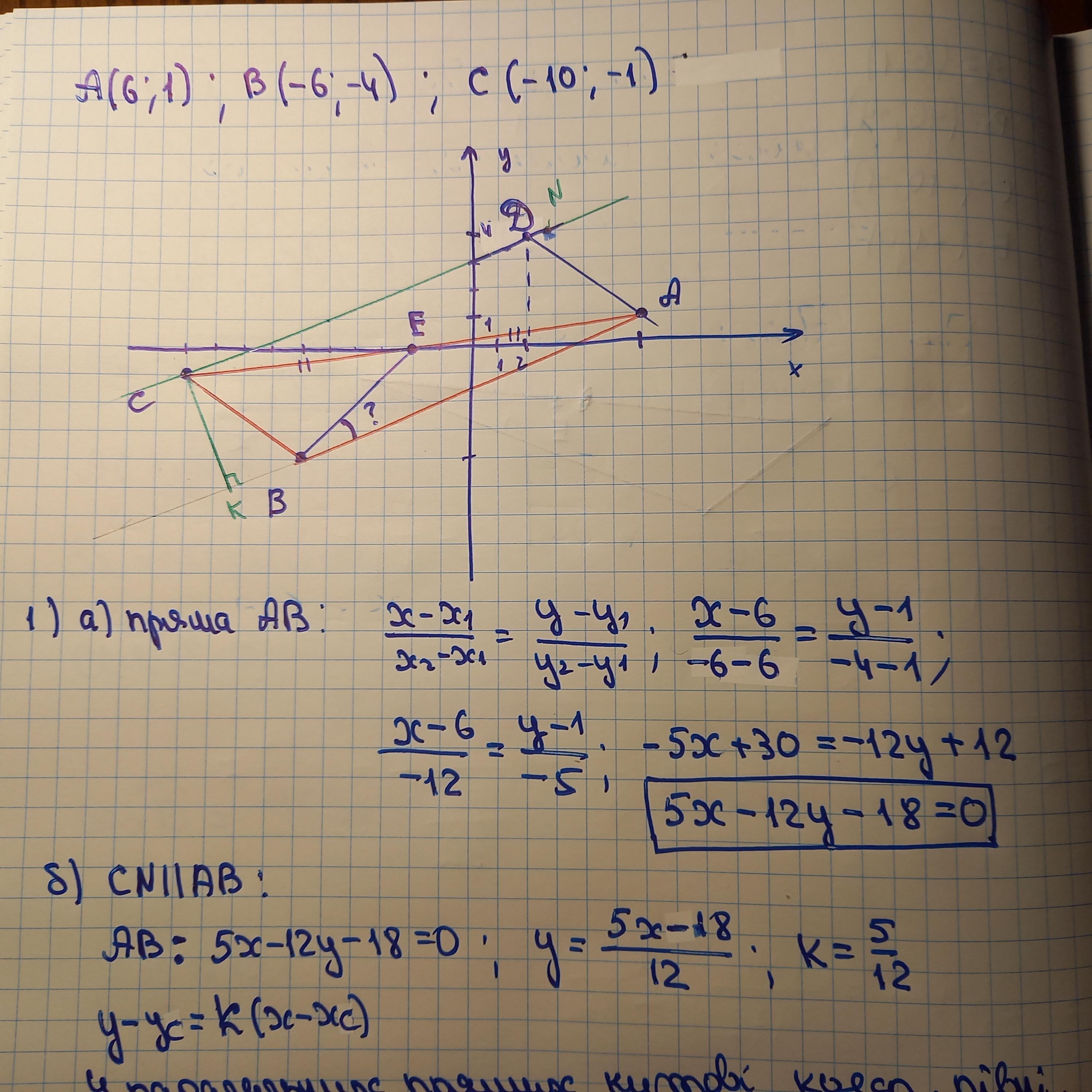 1) Скласти рівняння: а) прямої AB ; б) прямих, що проходять через точку C