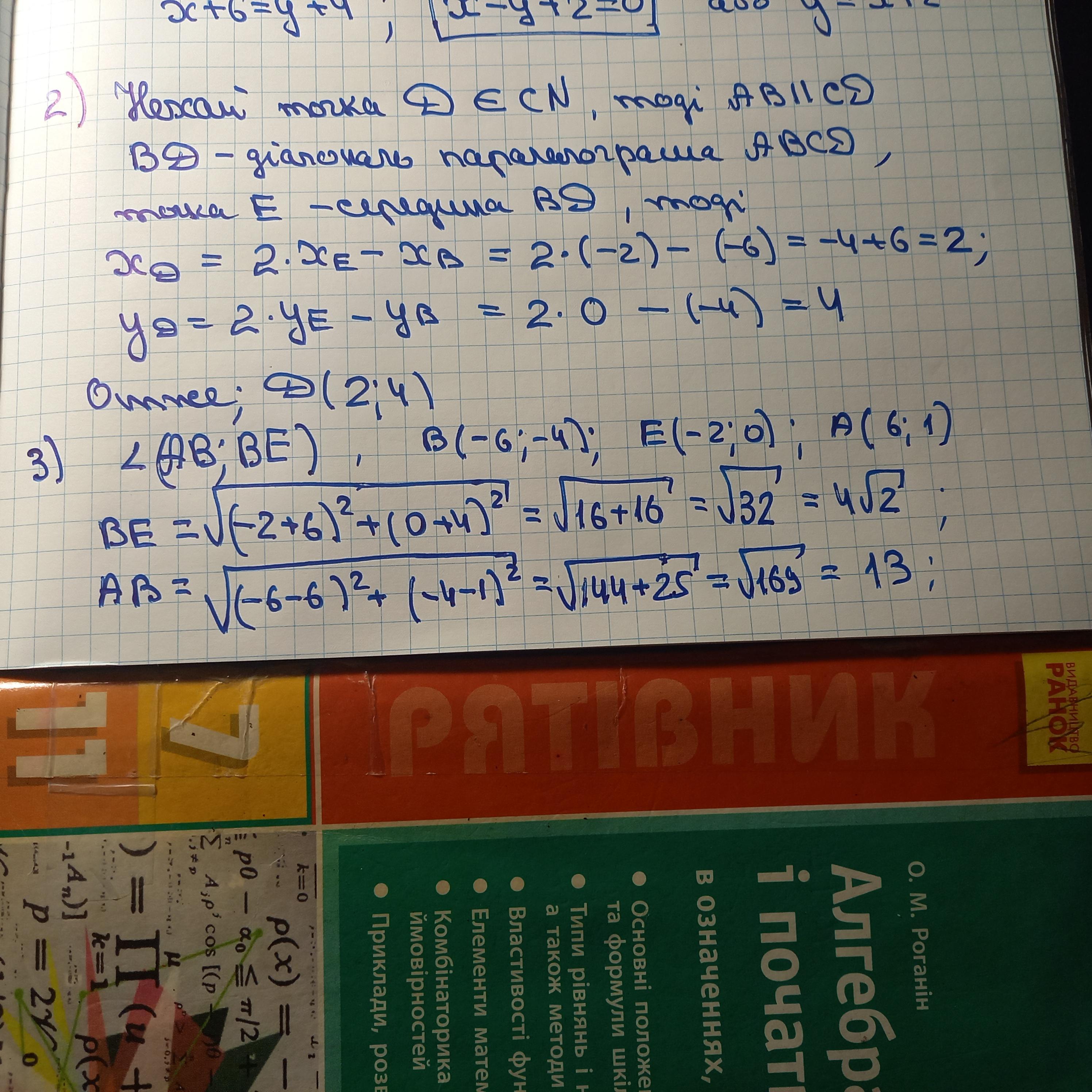 2) Знайти координати точки D , такої, щоб чотирикутник ABCD був