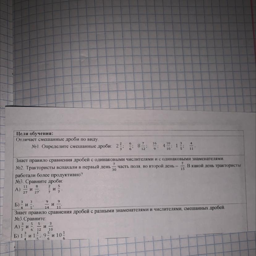 Знает правило сравнения дробей с разными знаменателями и числителями, смешанных дробей