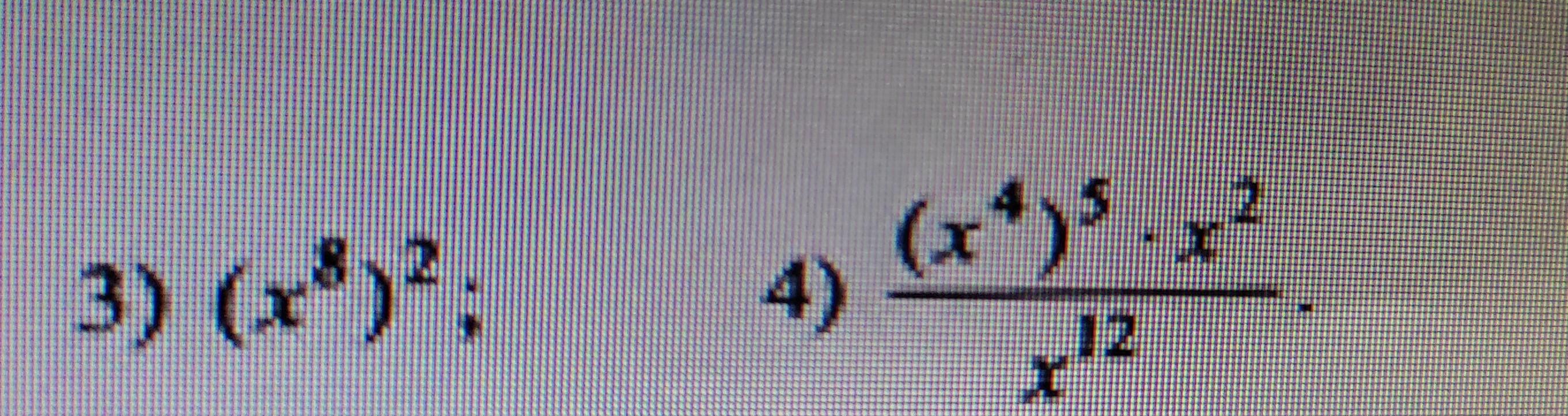 Пояснення: 4) x^20*x^2/x^12 = x^8*x^2 = x^10