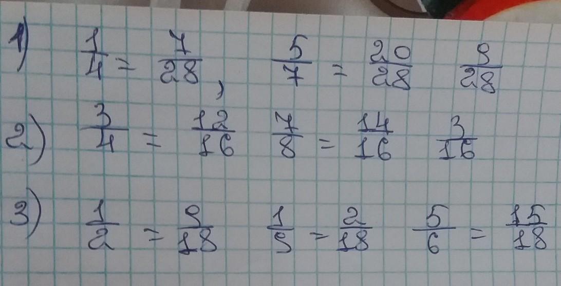 1/4 , 5/7 и 9/28 3/4, 7/8 и 3/16