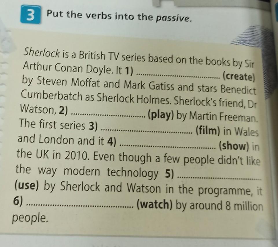 Ответ: 1) it is created 2) is played 3) is being filmed 4) is showed 5) is used 6) is watched