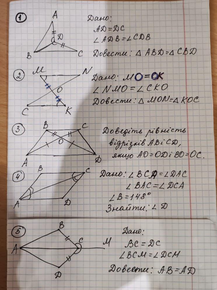 5)если ВС=СД и один угол Равен внешнии и внутренни тогда они подоьные, то есть АВ=АД