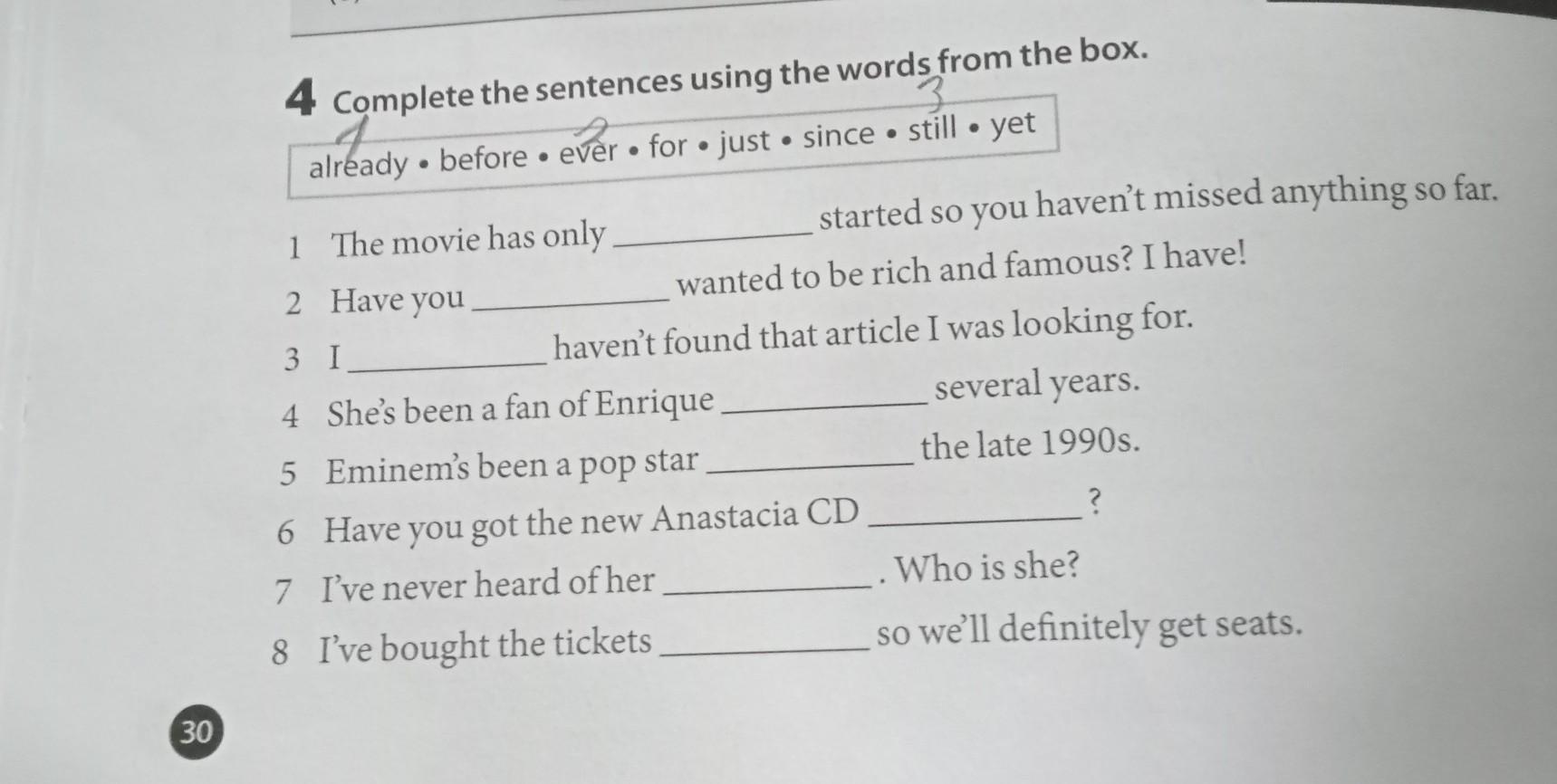 Ответ: 1. just 2. ever 3. still 4. for 5. since 6. already 7. before 8. yet