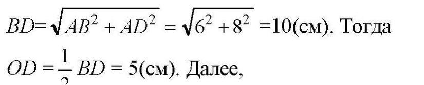 Тогда AO = BO = CO = DO, а значит, точка О является точкой пересечения AC и BD. В ΔABD: