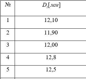 D=(D1+D2+D3+D4+D5)/n=(12,10+11,90+12,00+12,8+12,5)/5=12,26мм