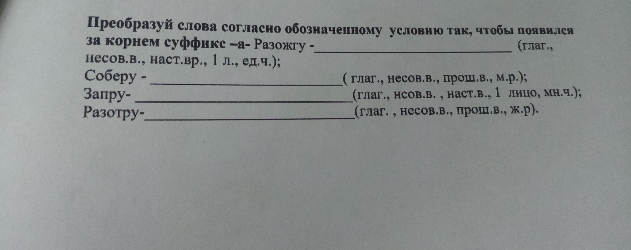 Преобразуй слова согласно обозначенному условию так чтобы появился за корнем суффикс - а