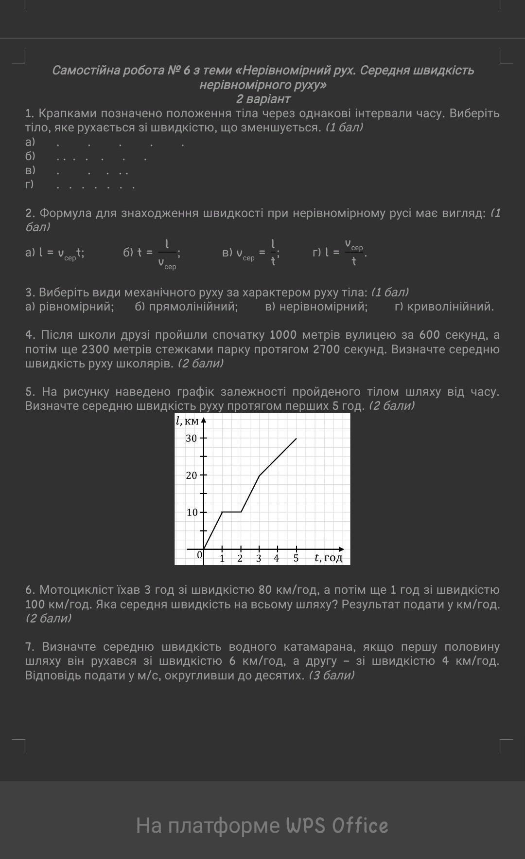 Самостійна робота № 6 з теми «Нерівномірний рух. Середня швидкість нерівномірного руху» 2 варіант.