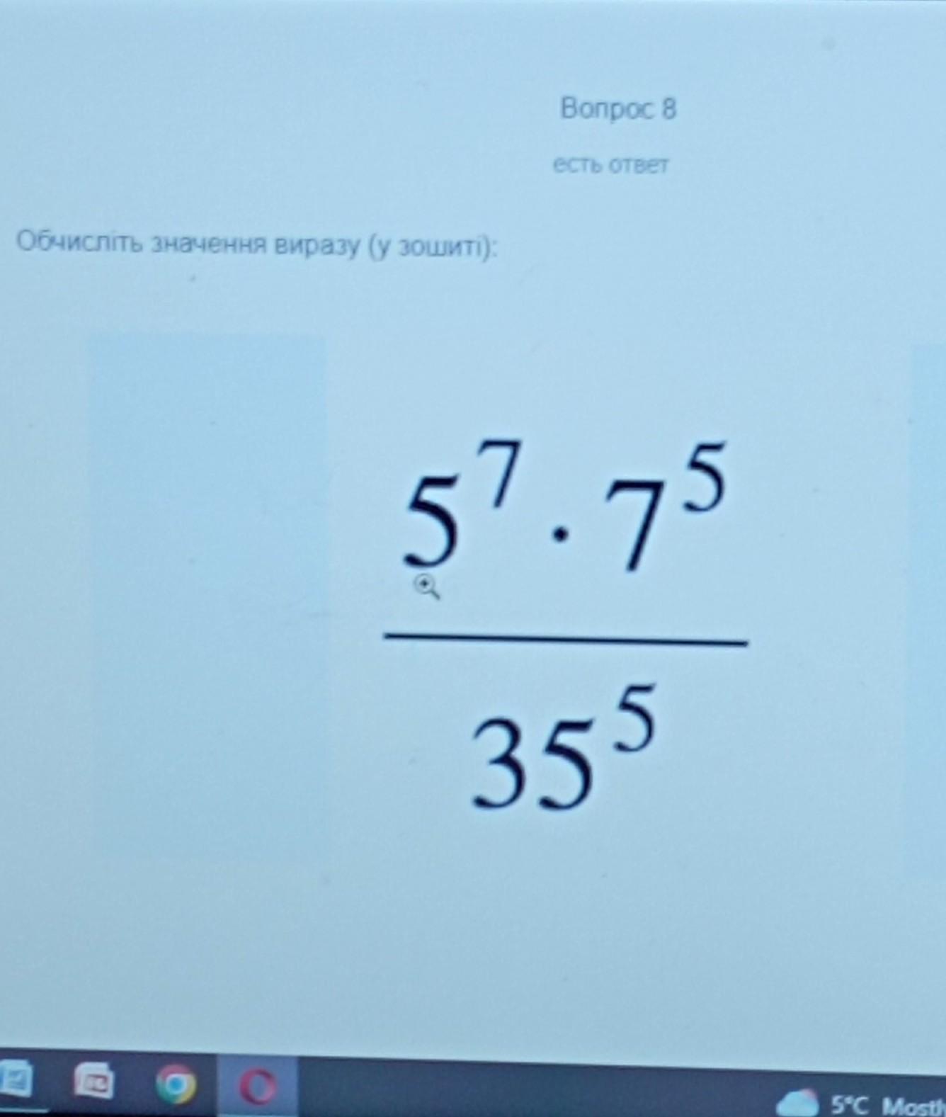 (5⁷ * 7⁵)/35⁵ = (5⁷ * 7⁵)/(5 * 7)⁵ = (5⁷ * 7⁵)/(5⁵ * 7⁵) =