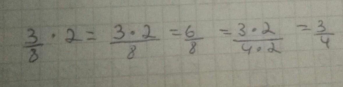 3/8 * 2 = (3*2)/8 = 6/8 = 3/4