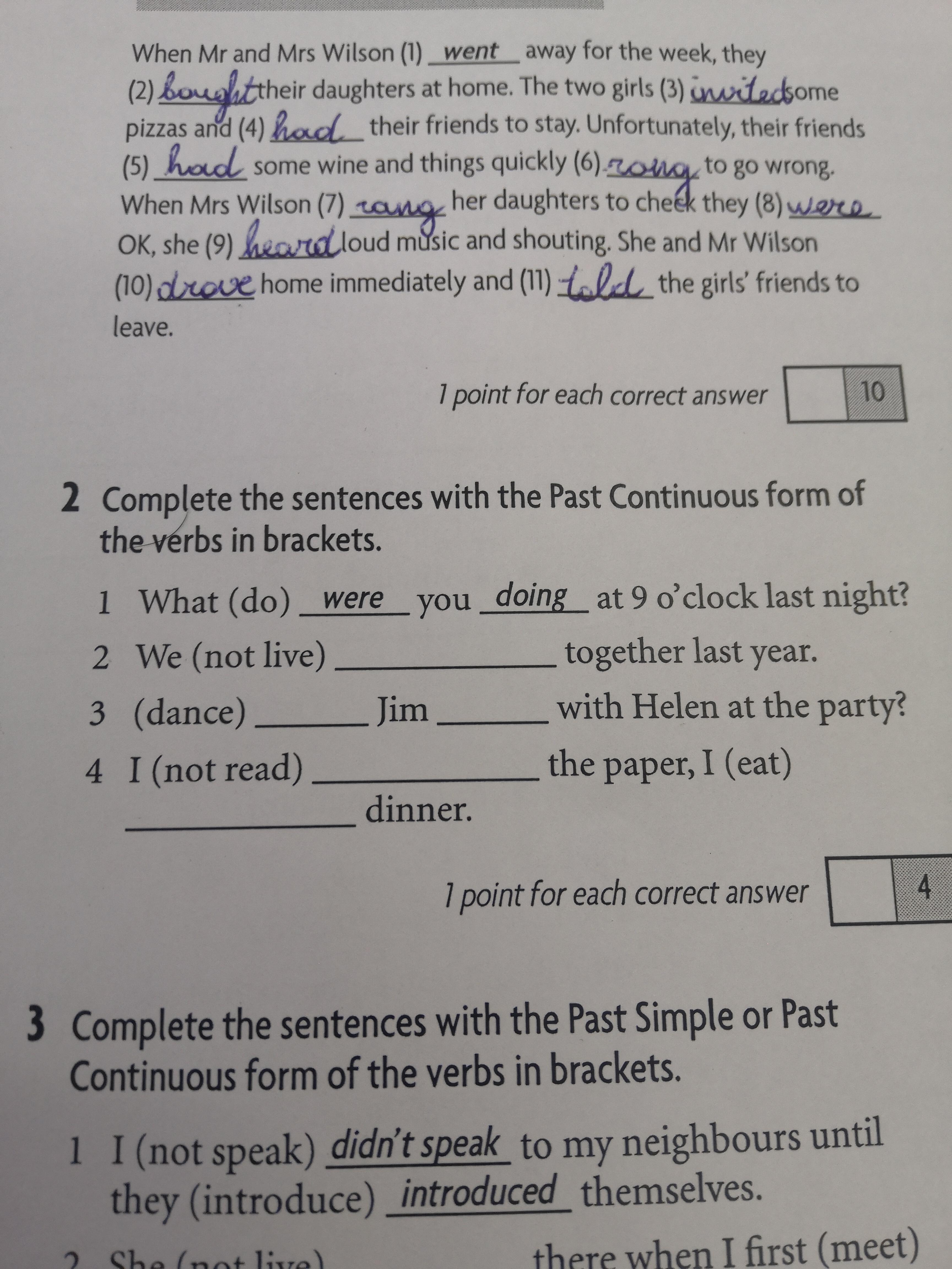1 weren’t living 2was jim dancing 3 i wasnt reading, i was eating
