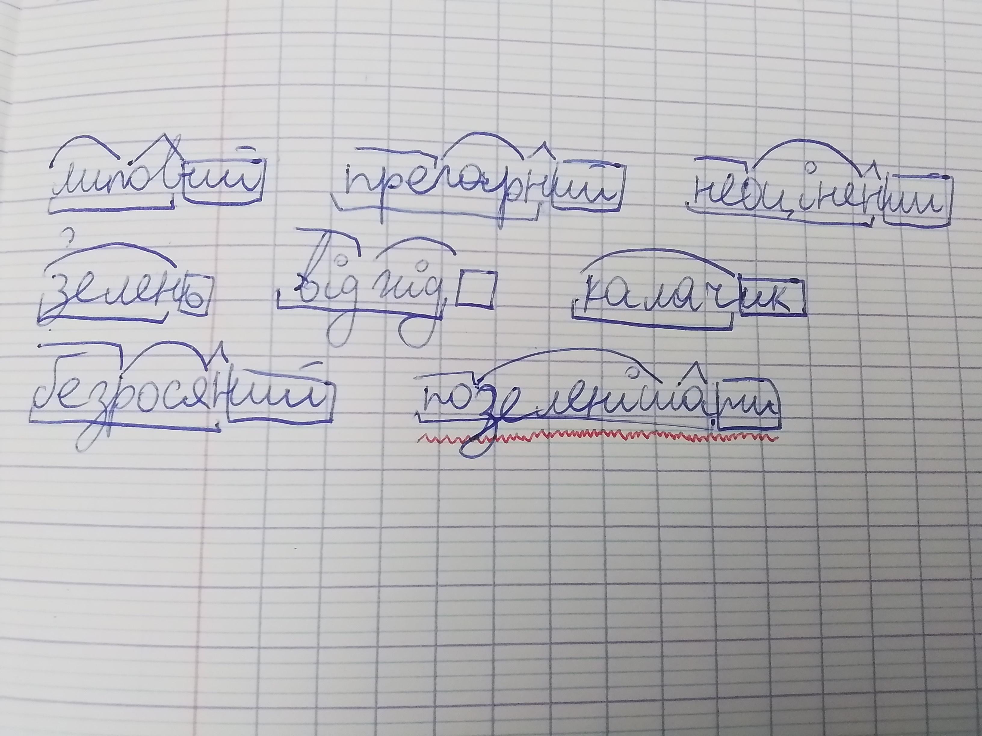 Допоможiть видiлити: Корiнь,префiкс,суфiкс,закiнчення в слiвах: калачик,липовий,прегарний,позеленiшати,неоцiненний,безросяний,зелень,вiдхiд.