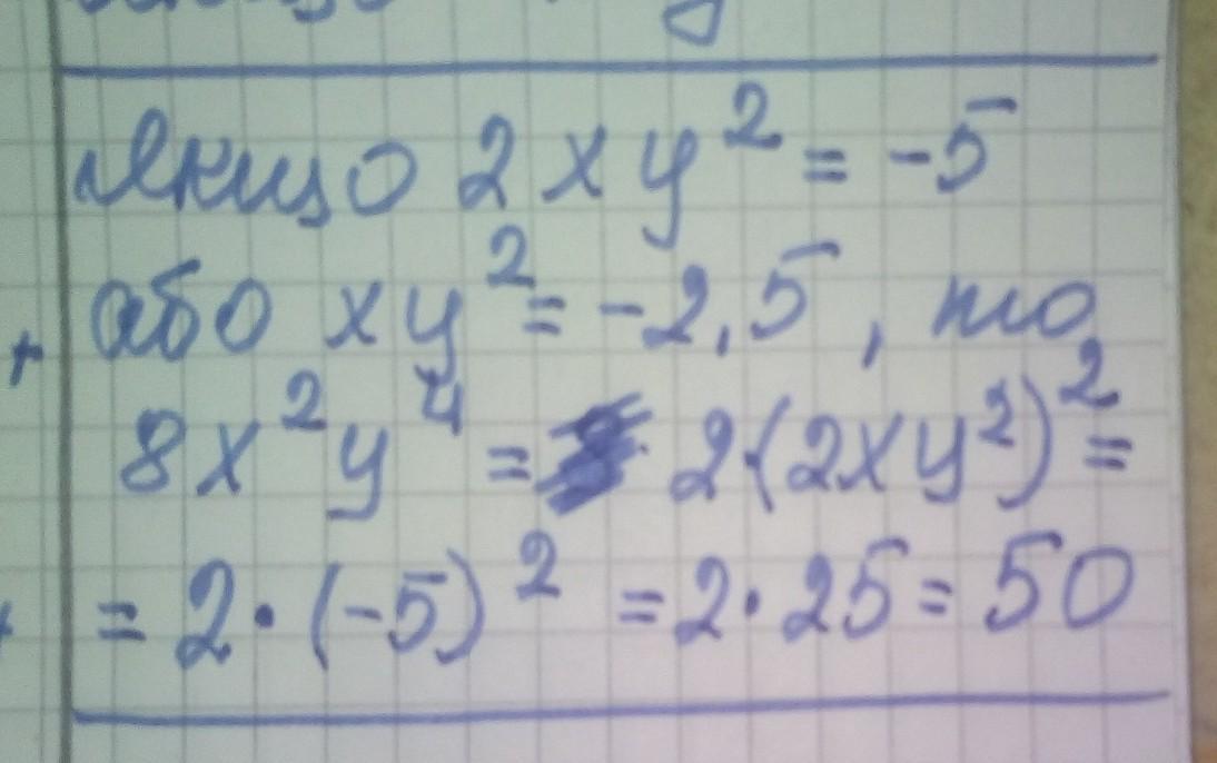 Знайдіть значення виразу 8x2y4, якщо 2ху2 = −5.