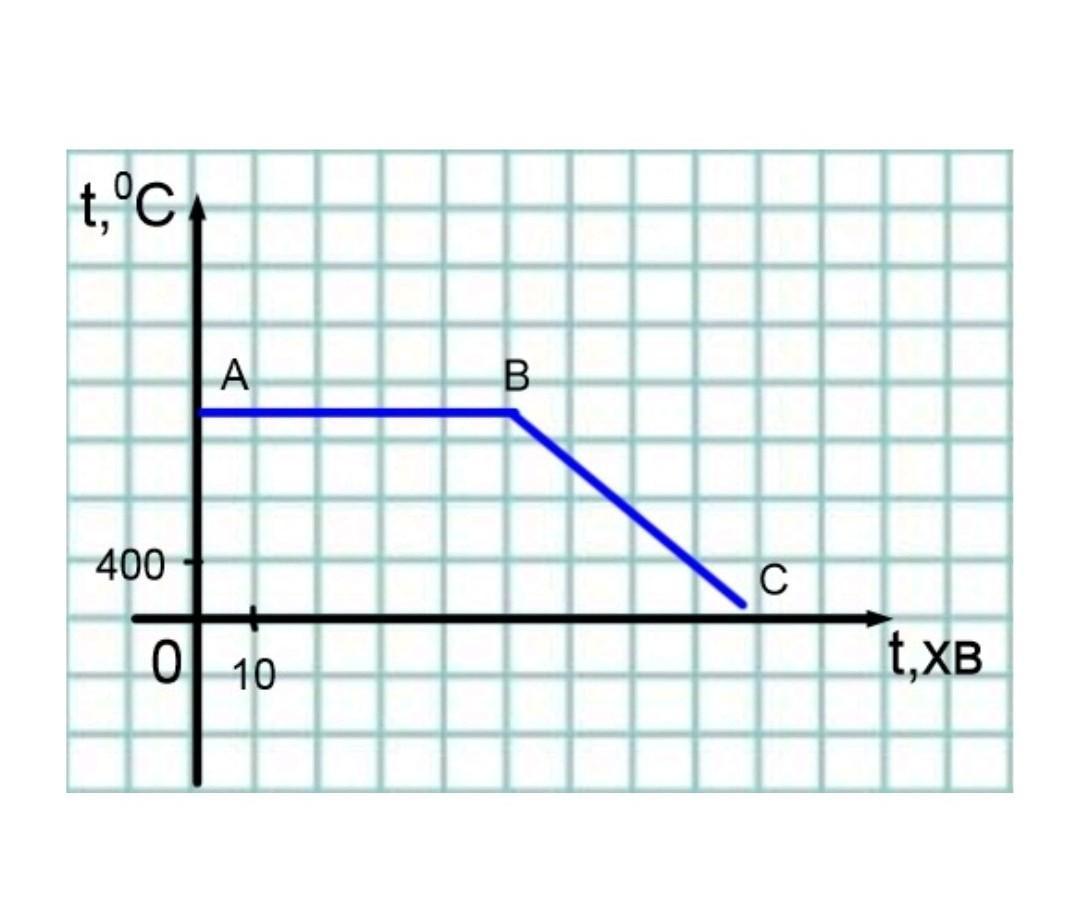 7. На рисунку зображений графік зміни температури деякого тіла. Проаналізуйте та охарактеризуйте графік. З якої речовини виготовлене це тіло? У якому агрегатному стані знаходиться речовина в т.А і т.С?