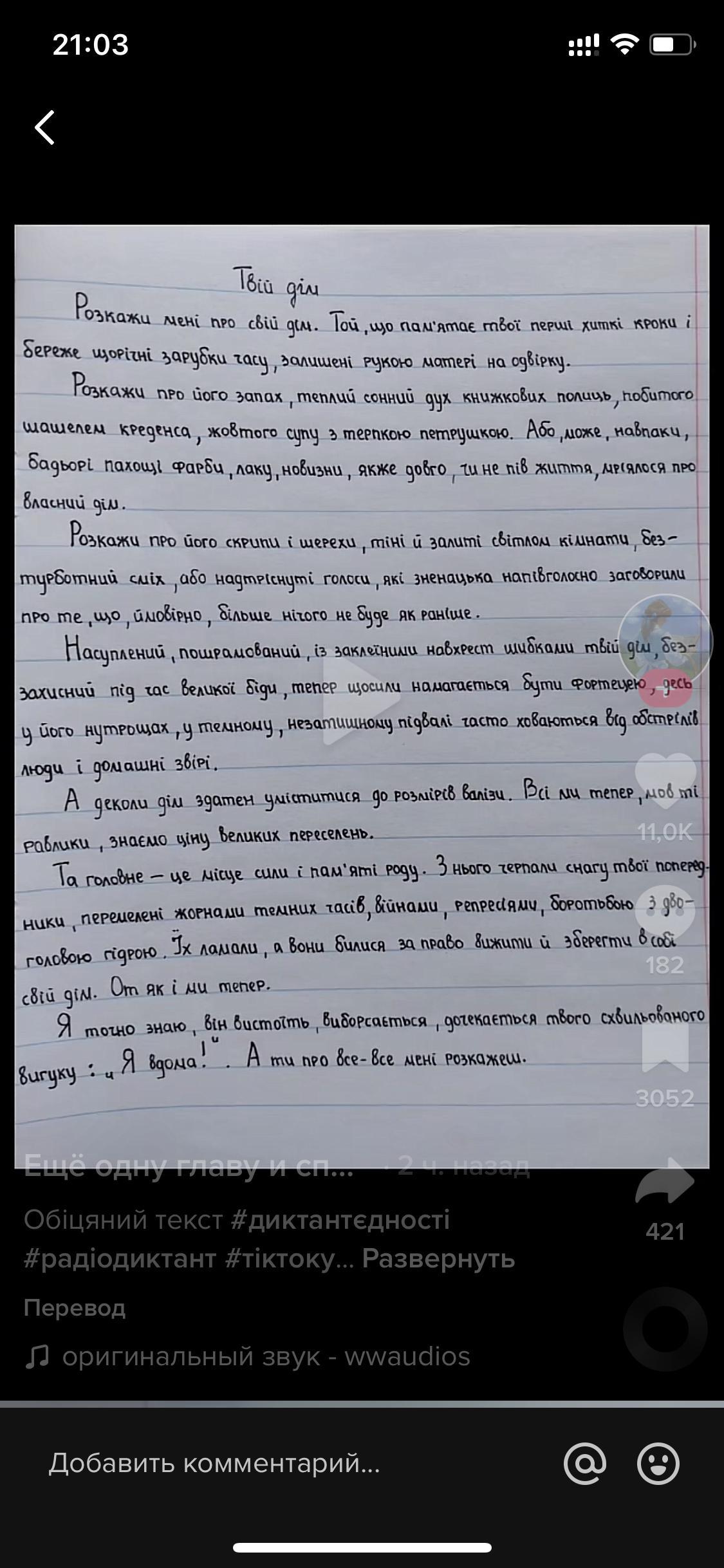 Радіодиктант 2022 "Мій дім" (скиньте текст будь ласка)