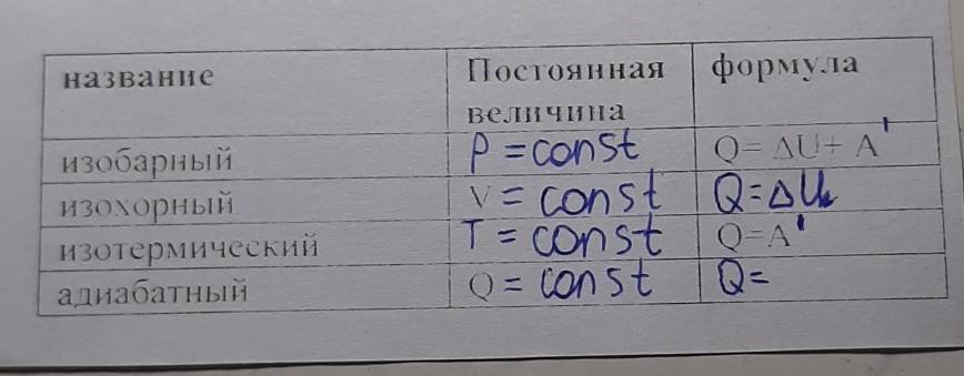 Изобарный; Q = ΔU + A'
