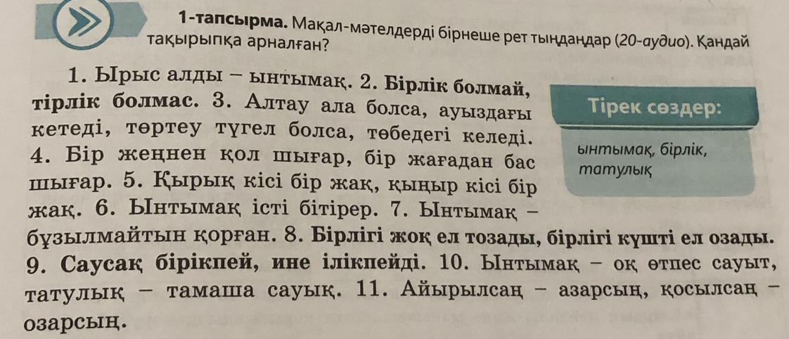 3-тапсырма «Мақал-мәтелдер не дейді?» атты сөз жарысын ұйымдастырып,