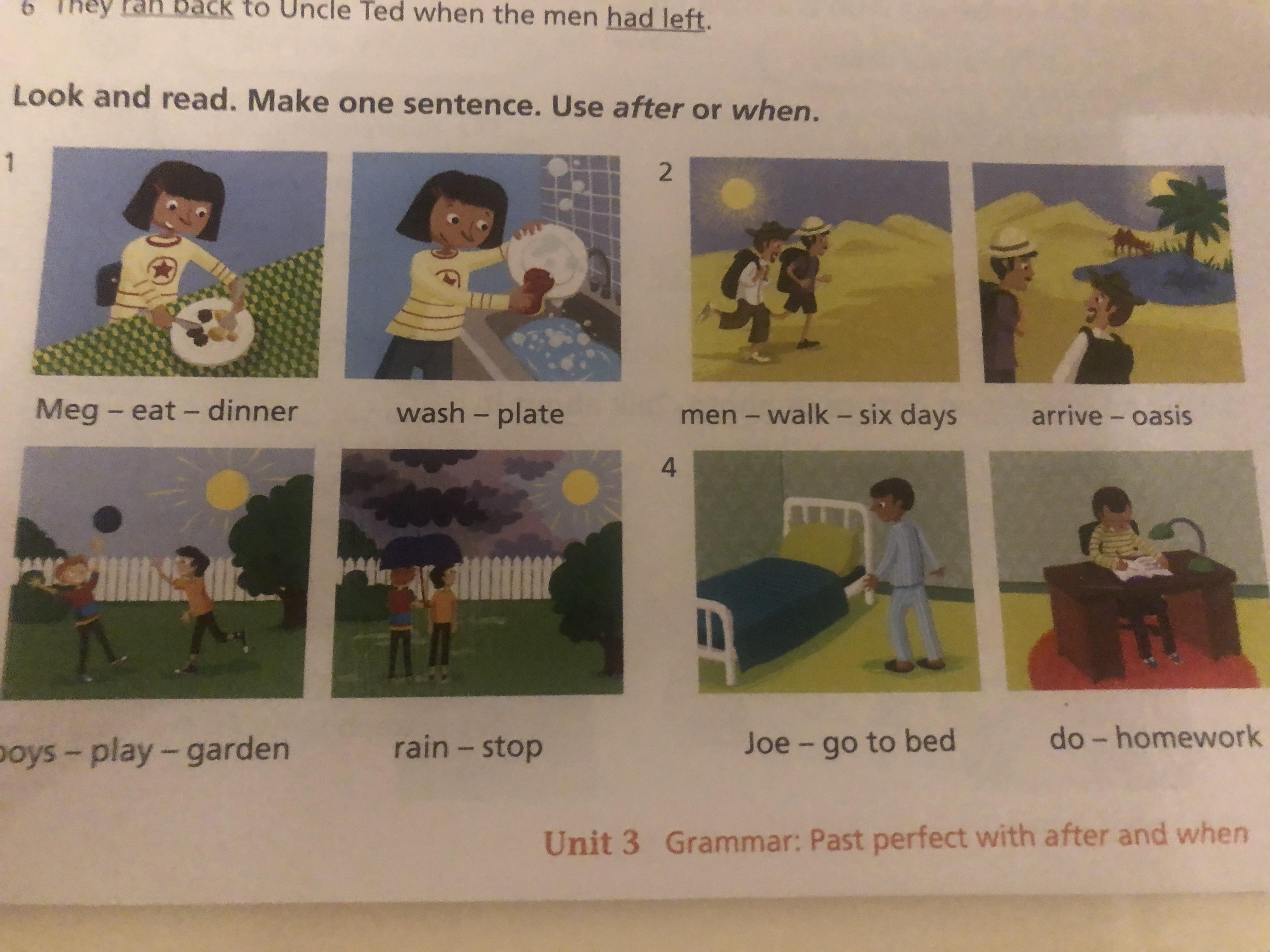 4. Joe is going to bed, after he did his homework