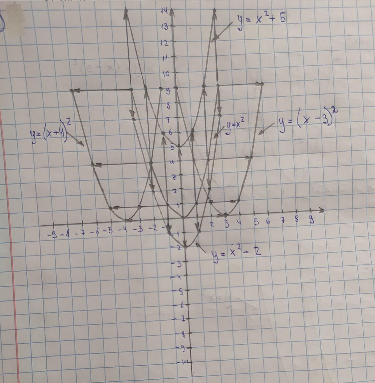 • коли ми переносимо вверх ми пишемо у=х²+5