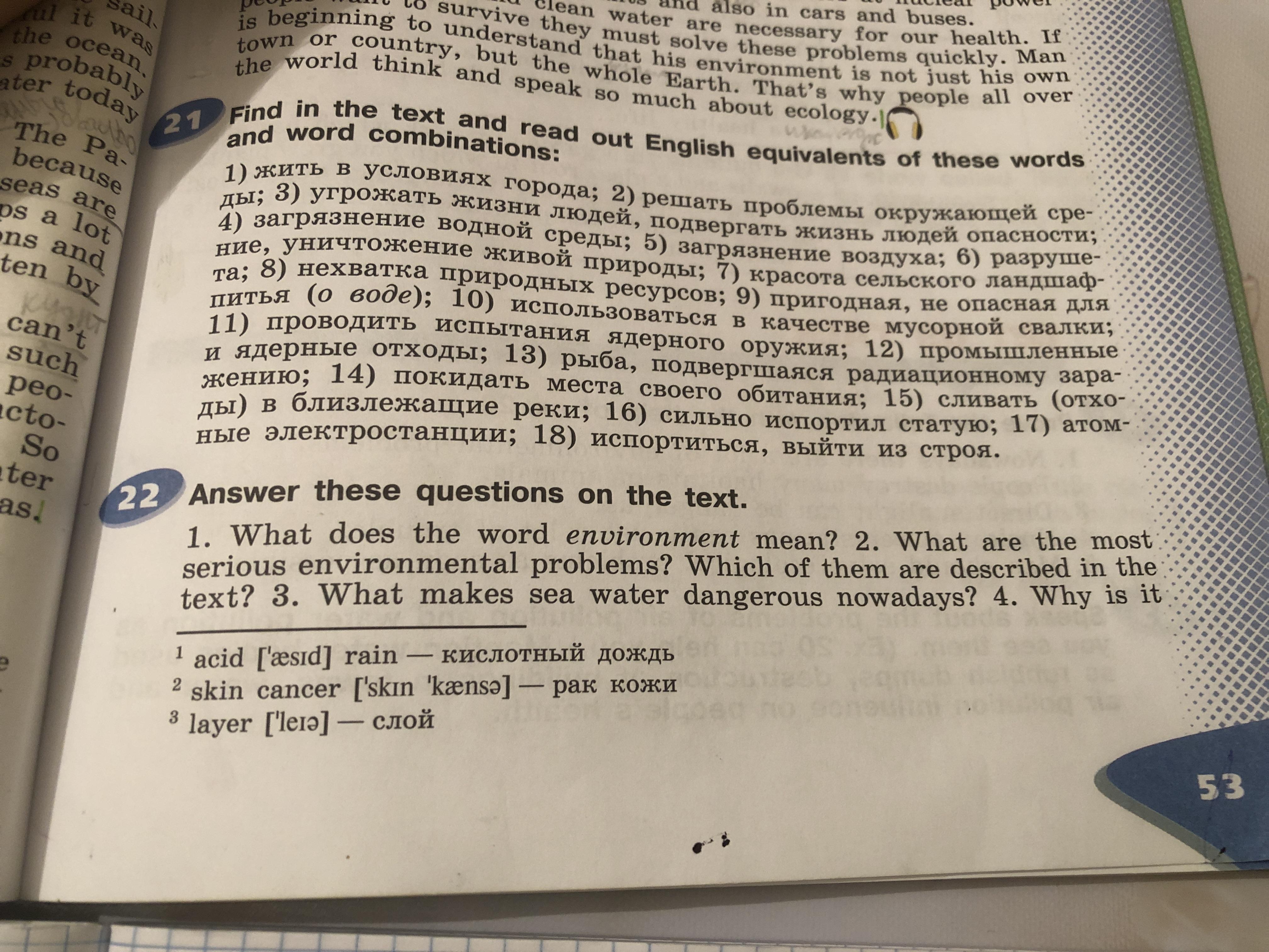 2 the most serious environmental problems are water pollution, air pollution, destruction, the nature killing, all of them are decribed in the text.