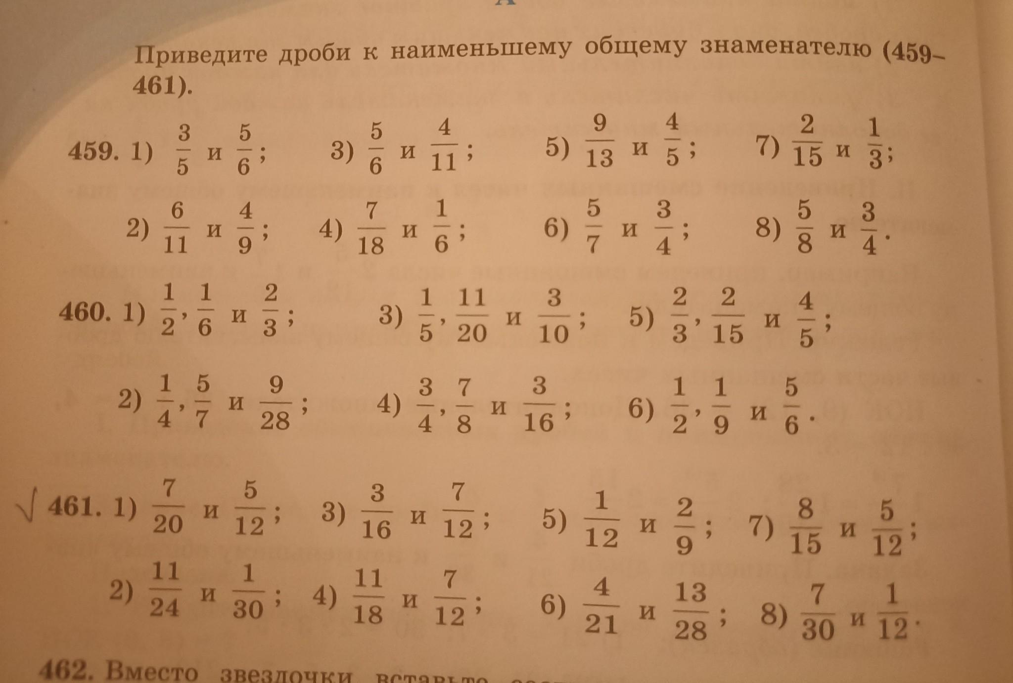 Для 5 и 6 наименьший общий знаменатель будет 30. Чтобы получилось 30, нужно 5 умножить на 6, соответственно нужно и числитель умножить на 6. Точно так же и со вторым числом. Чтобы получилось 30, нужно умножить знаменатель на 5, соответственно нужно и числитель умножить на 5. Все очень легко. С остальными примерами точно так же проделываете.