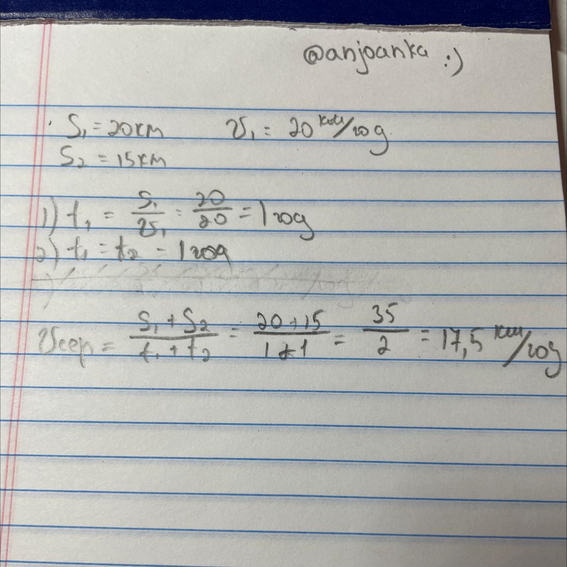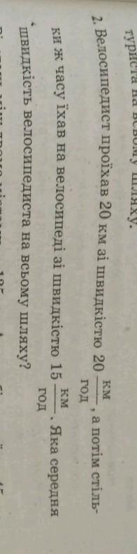 спочатку потрібно знайти час першої поїздки, ділимо шлях на швидкість. Дано, що час першої поїздки дорівнює другій, тобто 1 год. Після цього знаходимо середню швидкість, ділимо весь шлях на час.
