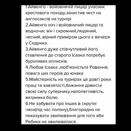 (Айвенго)Розповісти про героя за планом (письмово у зошиті):