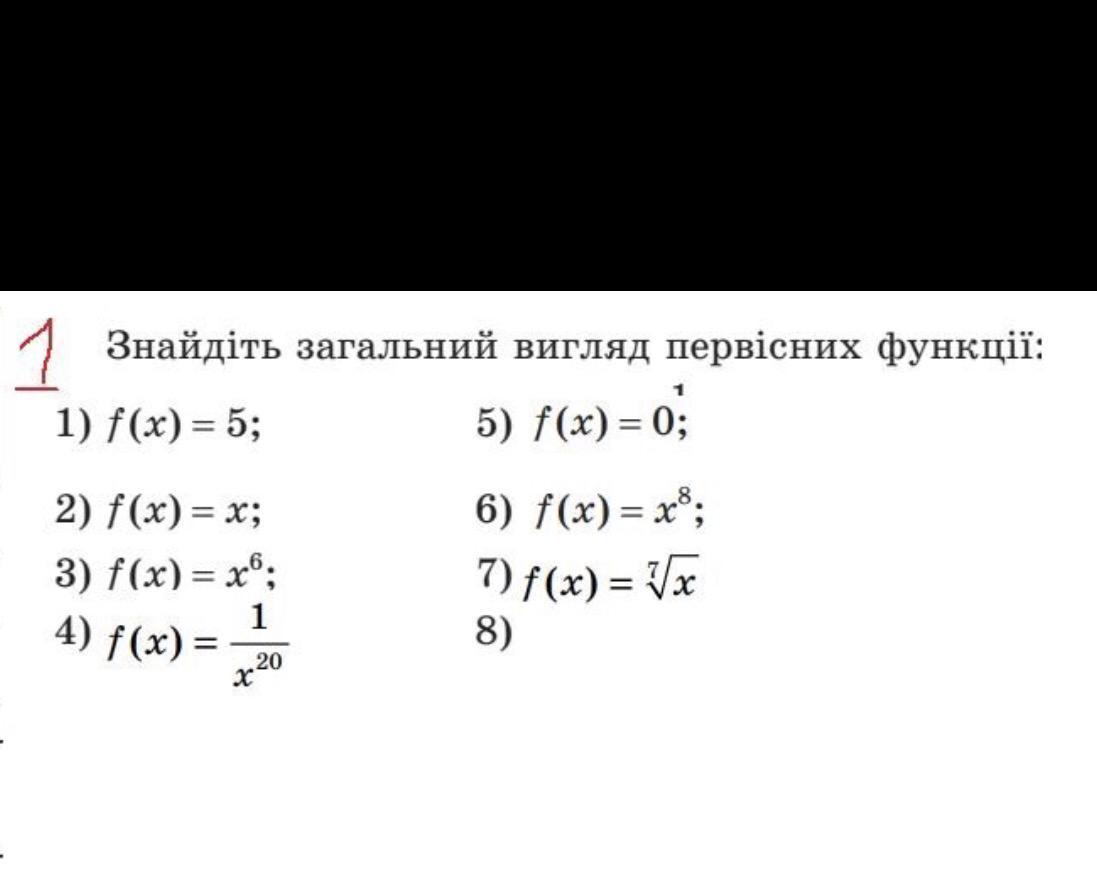Общий вид первообразных F(x) для функций f(x) .
