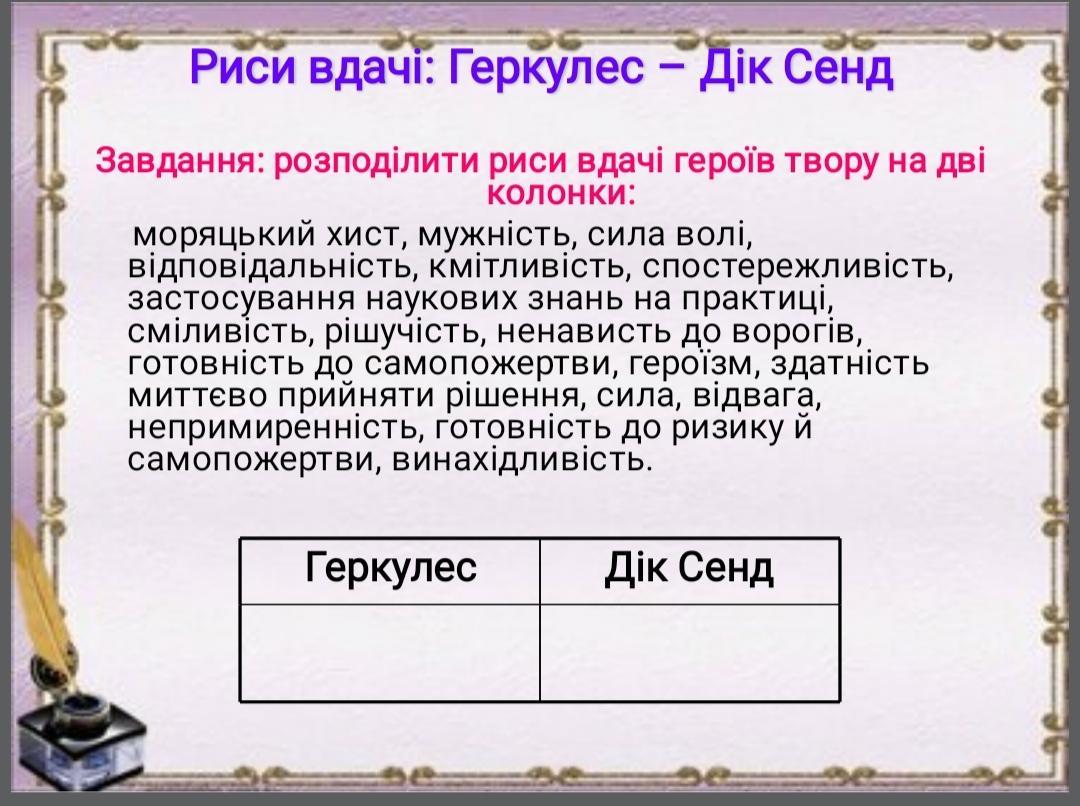 мужність, сила волі, відповідальність, спостережливість, сміливість, рішучий, ненависть до ворогів, непримеренність