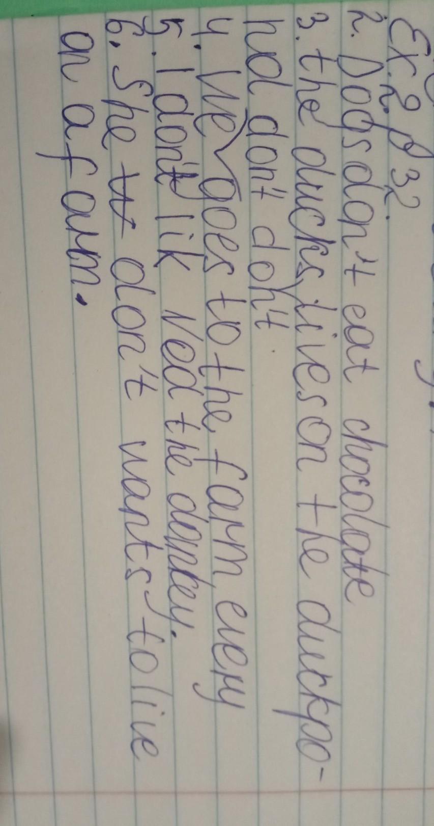 2 Make the sentences in exercise 1 negative. 1 The cows don't wake up very early in the morning. 2 3 4 5 6