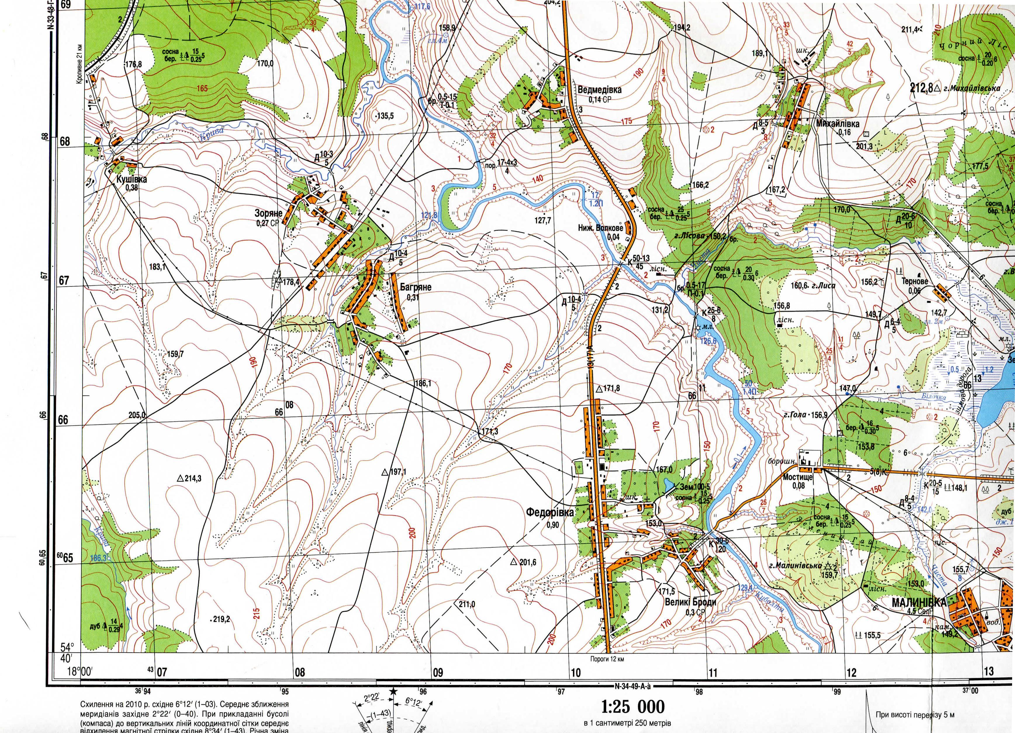 Прокласти маршрут по точках, за наданими координатами, на топографічній карті: